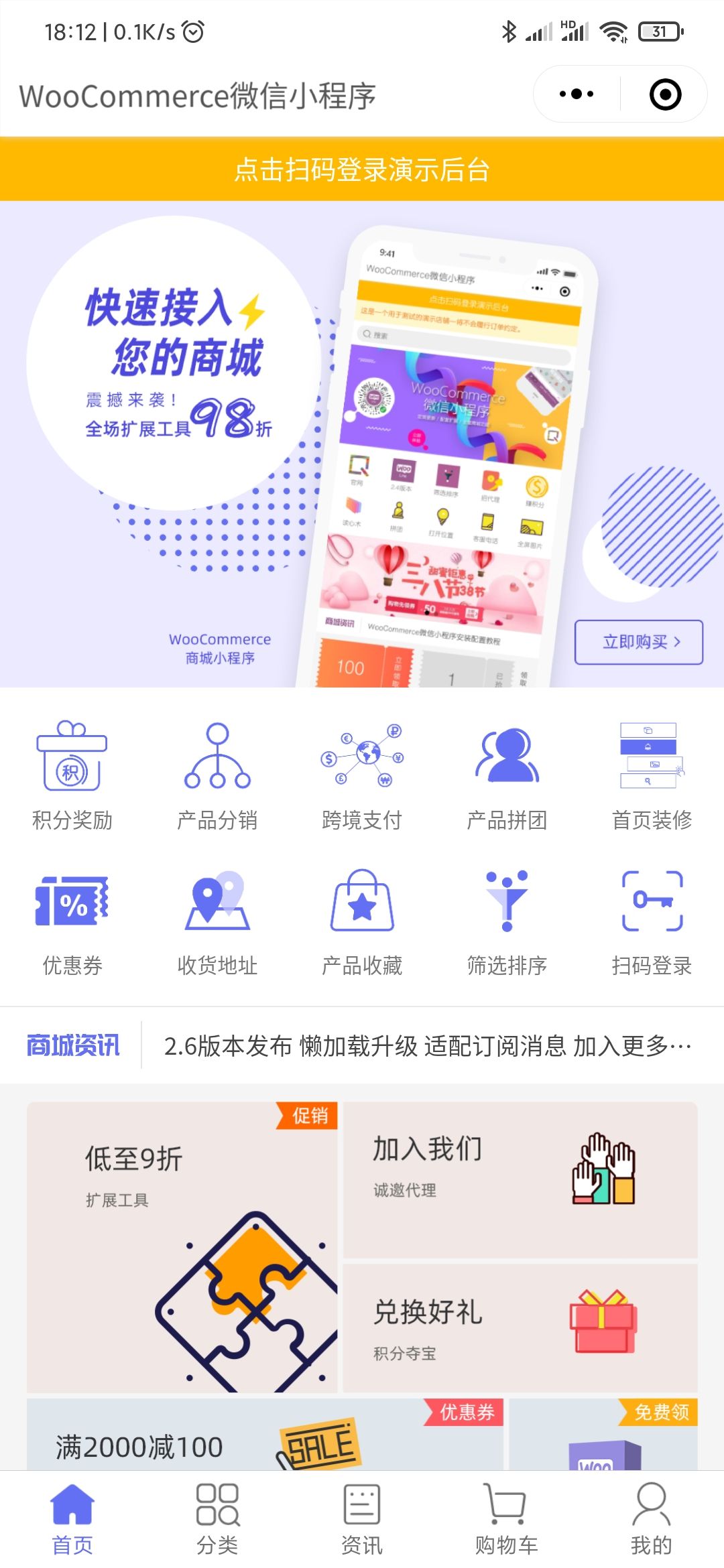 同时接入了WordPress文章系统作为商城资讯,对原有网站的使用及网站主题选择均不产生任何影响