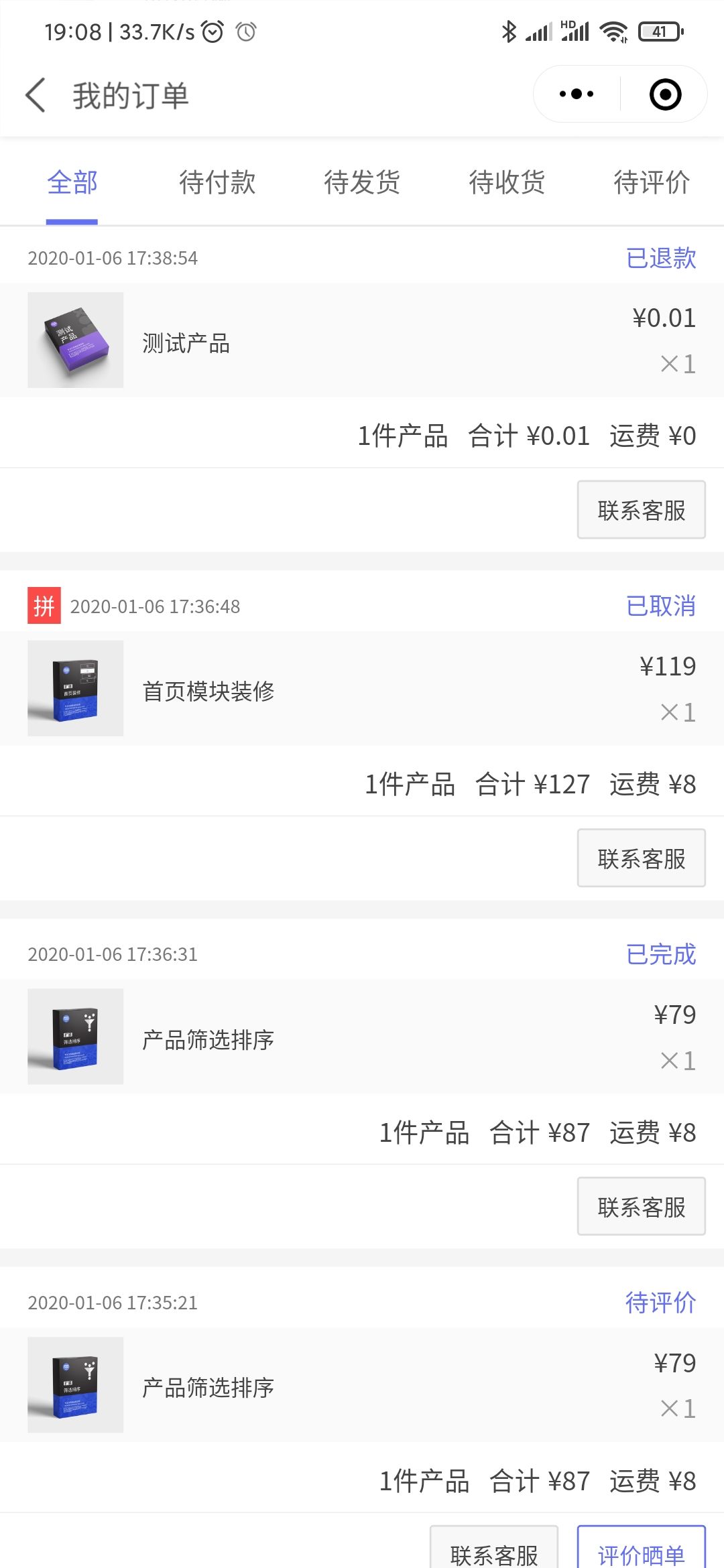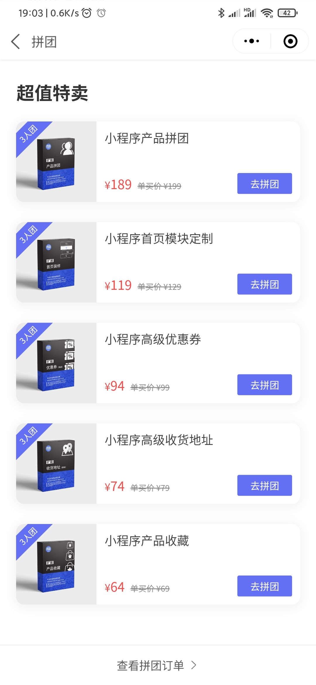 使用模板市场中的模板,更可一键导入模块布局、产品及分类,达到和演示小程序首页一模一样的效果