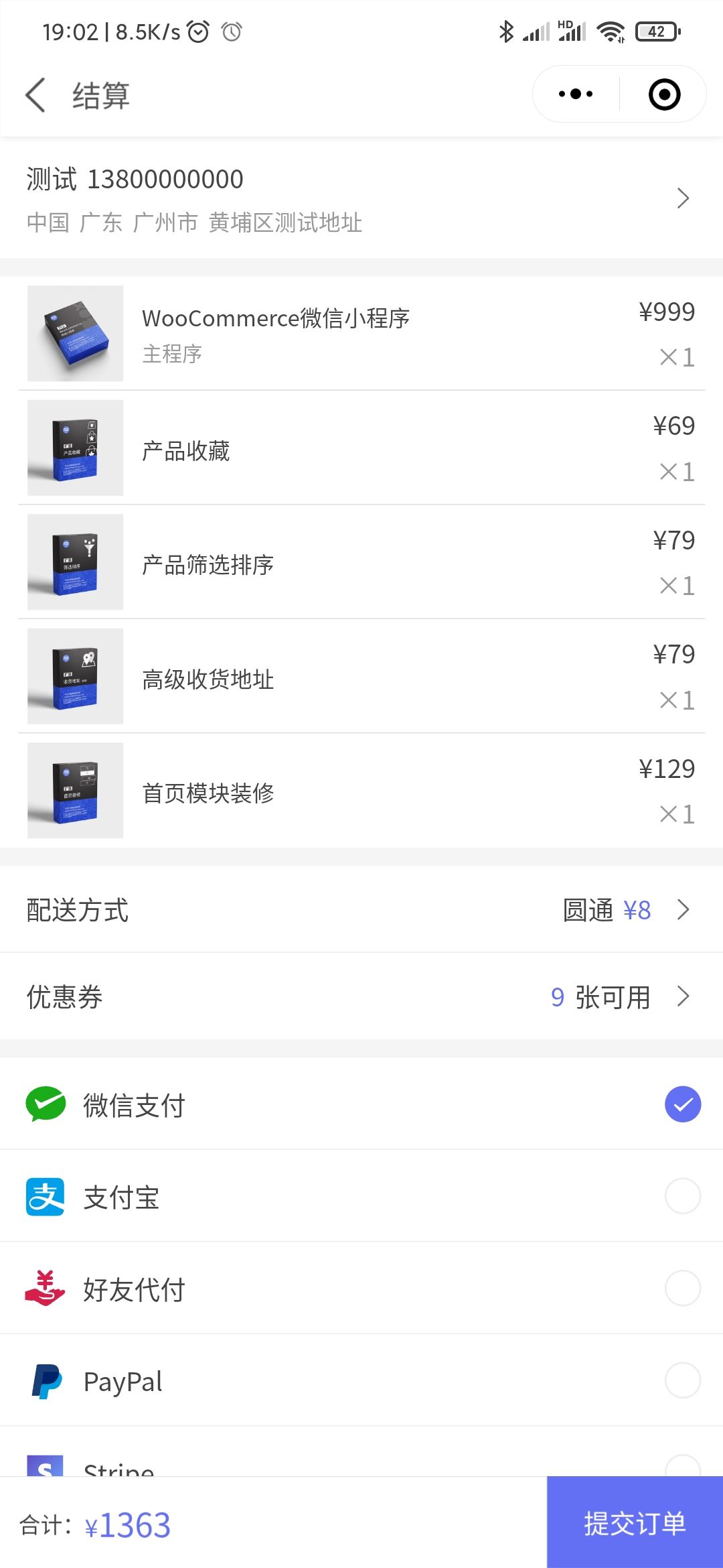 使用WooCommerce作为商城后台基础,产品、订单、分类、优惠券等数据均与网站互通,仅需发布一次,即可在网站和小程序同时生效
